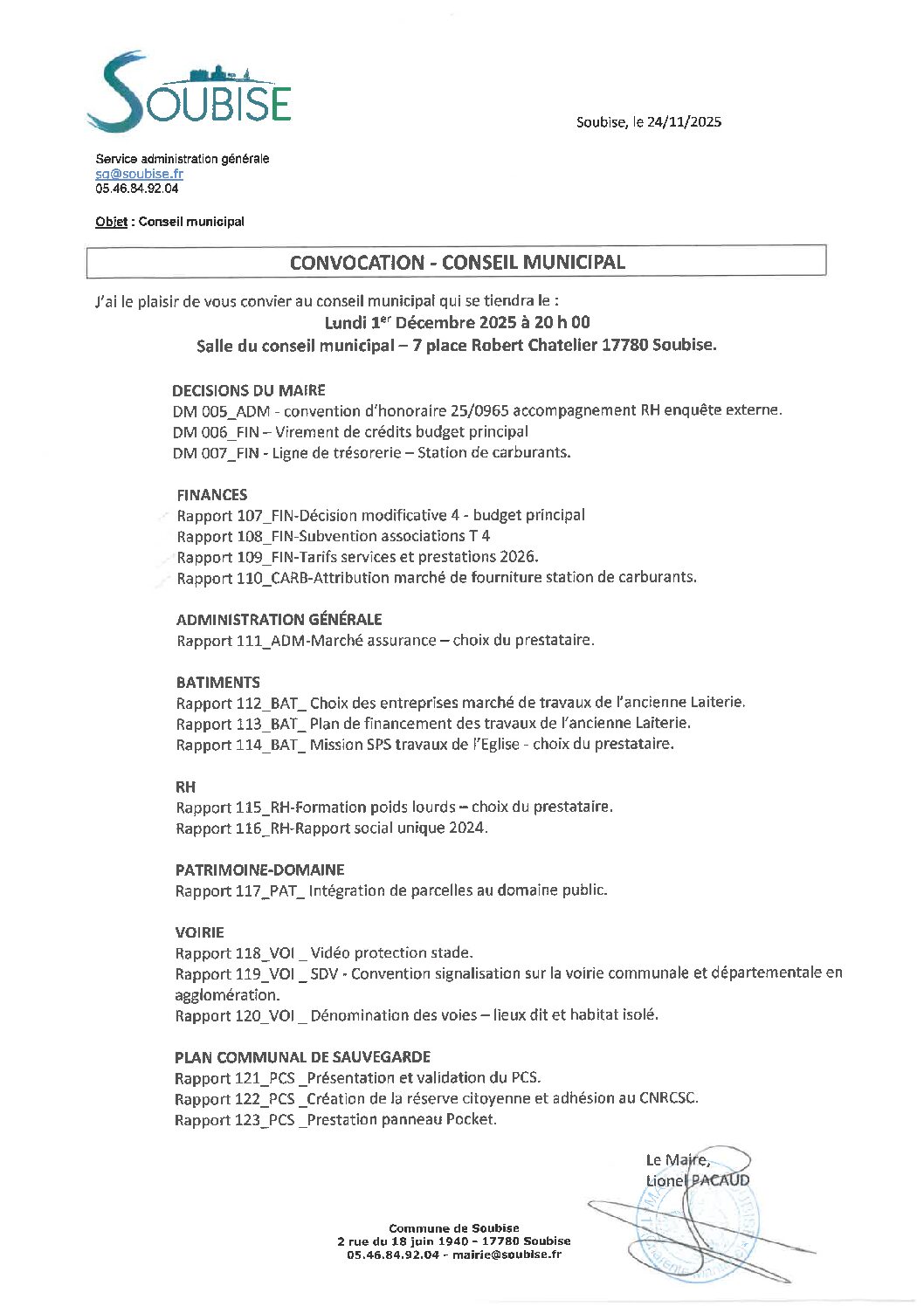• CONVOCATION CONSEIL MUNICIPAL DU 01/12/2025
